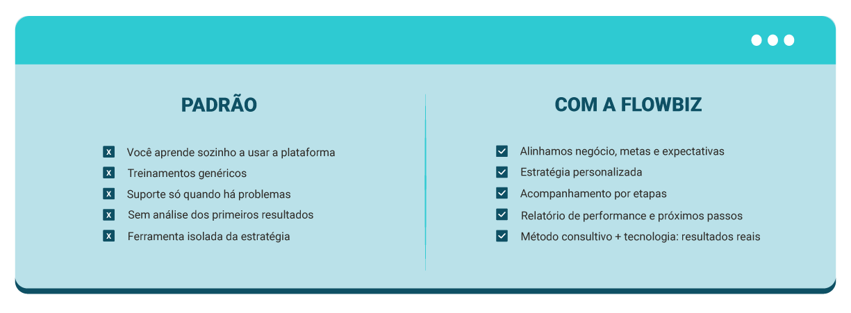Agende uma conversa com um especialista Flowbiz e receba recomendações práticas para melhorar seus resultados.