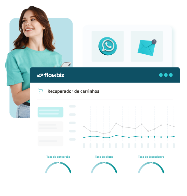 Recupere vendas perdidas ao transformar carrinhos abandonados em oportunidades reais. Com lembretes estratégicos por E-mail e WhatsApp, você impacta o cliente no momento certo e incentiva a finalização da compra. Em poucos cliques, cria fluxos inteligentes que combinam canais, elevam a taxa de recuperação e impulsionam o faturamento.